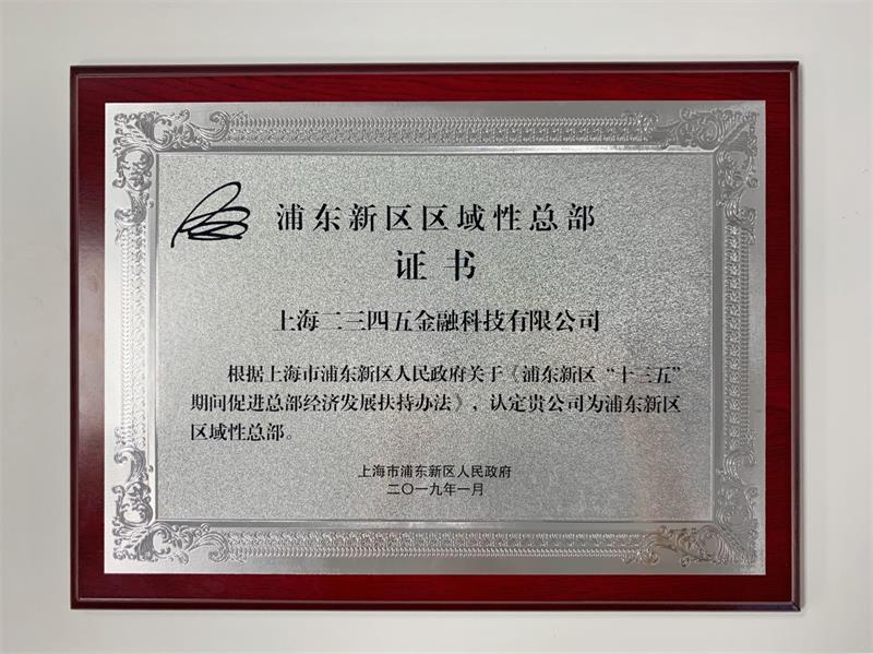 2月20日下午,第五屆浦東總部經(jīng)濟(jì)十大經(jīng)典樣本頒獎(jiǎng)典禮在上海國(guó)際會(huì)議中心舉行。上海二三四五金融科技有限公司憑借對(duì)浦東經(jīng)濟(jì)的突出貢獻(xiàn),在眾多參選的浦東企業(yè)中脫穎而出,榮獲“浦東新區(qū)區(qū)域性總部”認(rèn)定。這是繼上海二三四五網(wǎng)絡(luò)科技有限公司之后,二三四五網(wǎng)絡(luò)控股集團(tuán)旗下子公司第二次獲得該項(xiàng)資質(zhì)。